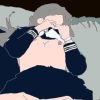 理科室の台の上(よく分からない紫の液体で濡れ差分あり)